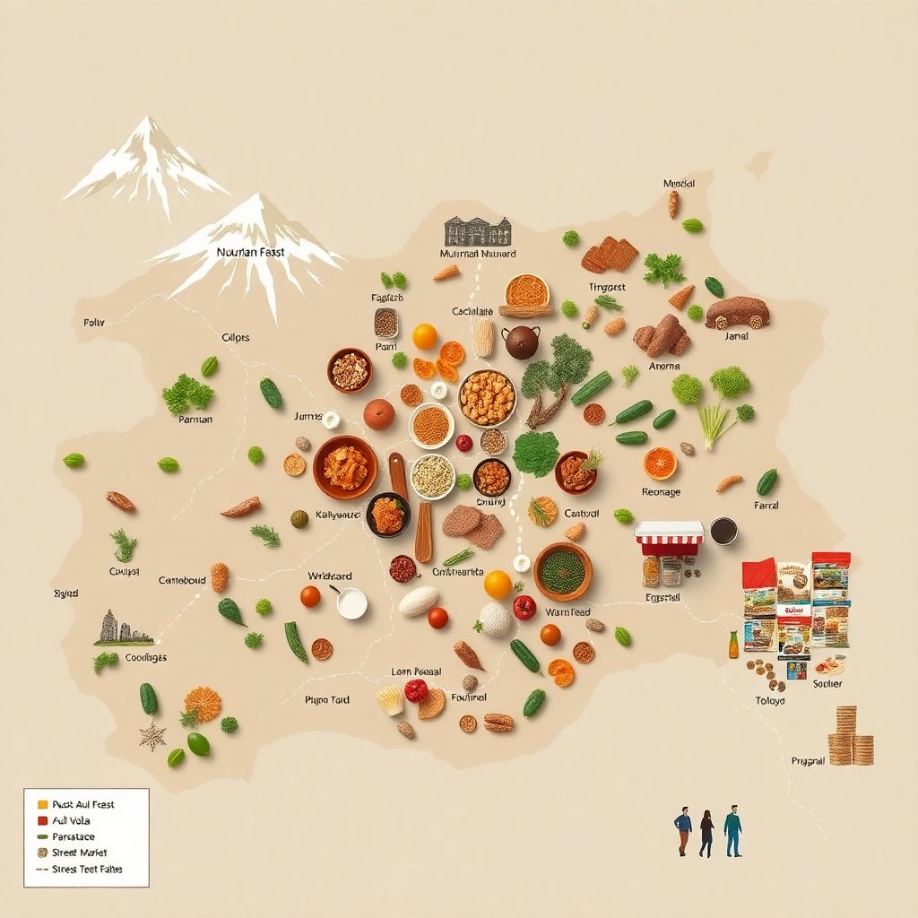 Кулинарная карта Кавказа — это не просто перечень блюд, а целый мир, в котором горный аул, сельский двор и шумный городской рынок соединяются в единую систему вкусов и ритуалов. В глухих горных селениях кормят тем, что дают собственные хозяйства и сезон: простая, но очень насыщенная еда. В крупных селах к этому добавляются заготовки, копчения, домашние сыры и выпечка. В городах же традиционная кухня сплетается с современной уличной едой и кафе, и это уже другая сцена — более быстрая, яркая, но опирающаяся на те же принципы щедрости, сытности и уважения к гостю. Именно из такого разнообразия и складывается живая «кулинарная карта Кавказа».