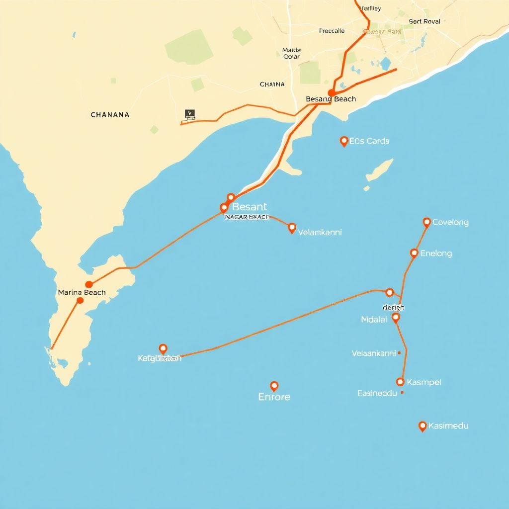 Ченнаи, столица штата Тамилнад на юго-востоке Индии, располагается вдоль Бенгальского залива, что делает город одним из главных центров прибрежного туризма. Пляжи здесь распределены на северные, центральные и южные, каждый из которых имеет свою инфраструктуру и доступность. Под «маршрутом» в данном контексте понимается логистическая цепочка перемещения туриста между точками интереса с учетом дорожной ситуации, транспортной доступности и времени в пути. В 2025 году маршруты стали более оптимизированными благодаря улучшению городской транспортной сети, включая расширение метро и развитие автобусных линий.